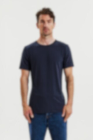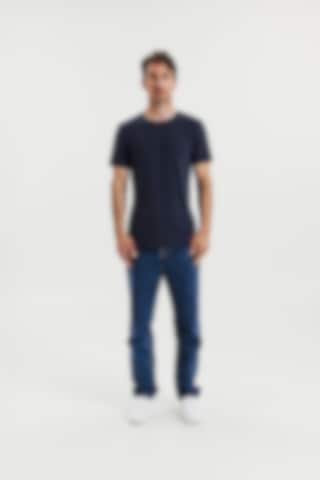 Crafted from luxurious Lenzing TENCEL™ Lyocell fabric, this T-shirt features a remarkable luster and a silky-smooth touch. It offers a slightly slimmer silhouette with just the right amount of stretch for a fitted feel, ideal for layering under a shirt or wearing alone for a sleek, lightweight fit. The neckline features a hidden seam, enhancing comfort, while care instructions are printed directly on the fabric to eliminate chafing from labels