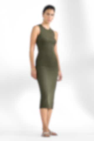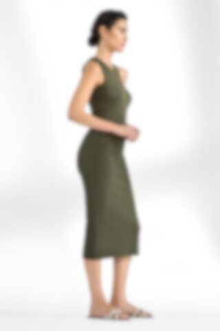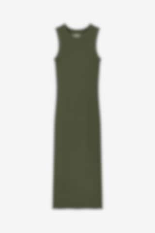 Ribbed dress with high neckline. The dress is made from an organic cotton blend for a lasting, figure-hugging fit. The perfect summer garment when you want to dress elegantly but casually. Wear it as is or add a shirt for a more dressed up look.