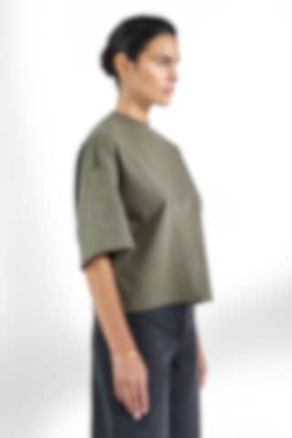 Crafted from sturdy 300 gsm organic cotton fabric, this T-shirt offers a substantial feel and exceptional comfort. It features a robust neckline with top stitch detailing and stylish side slits. With slightly extended sleeves and broader shoulders, it gives a subtle oversized look. This piece truly shines when worn solo, delivering an effortlessly cool aesthetic.