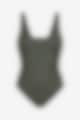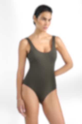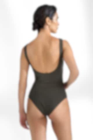 Elevate your beachwear with our sophisticated Swimsuit, featuring a gracefully deep plunge back. Enhanced by built-in bust support for added comfort, this piece redefines elegance. The ribbed fabric offers both a flattering fit and a captivating sheen. Plus, its versatility shines through – easily transition from beach to street by pairing this swimsuit with shorts or a skirt