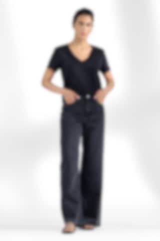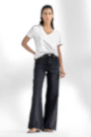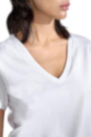 A modern classic, this T-shirt features a boxy cut crafted from dense, soft organic cotton jersey. Designed for a regular fit, it has a generous V-neck and is finished with precise topstitching along the edges—an essential staple for any wardrobe.