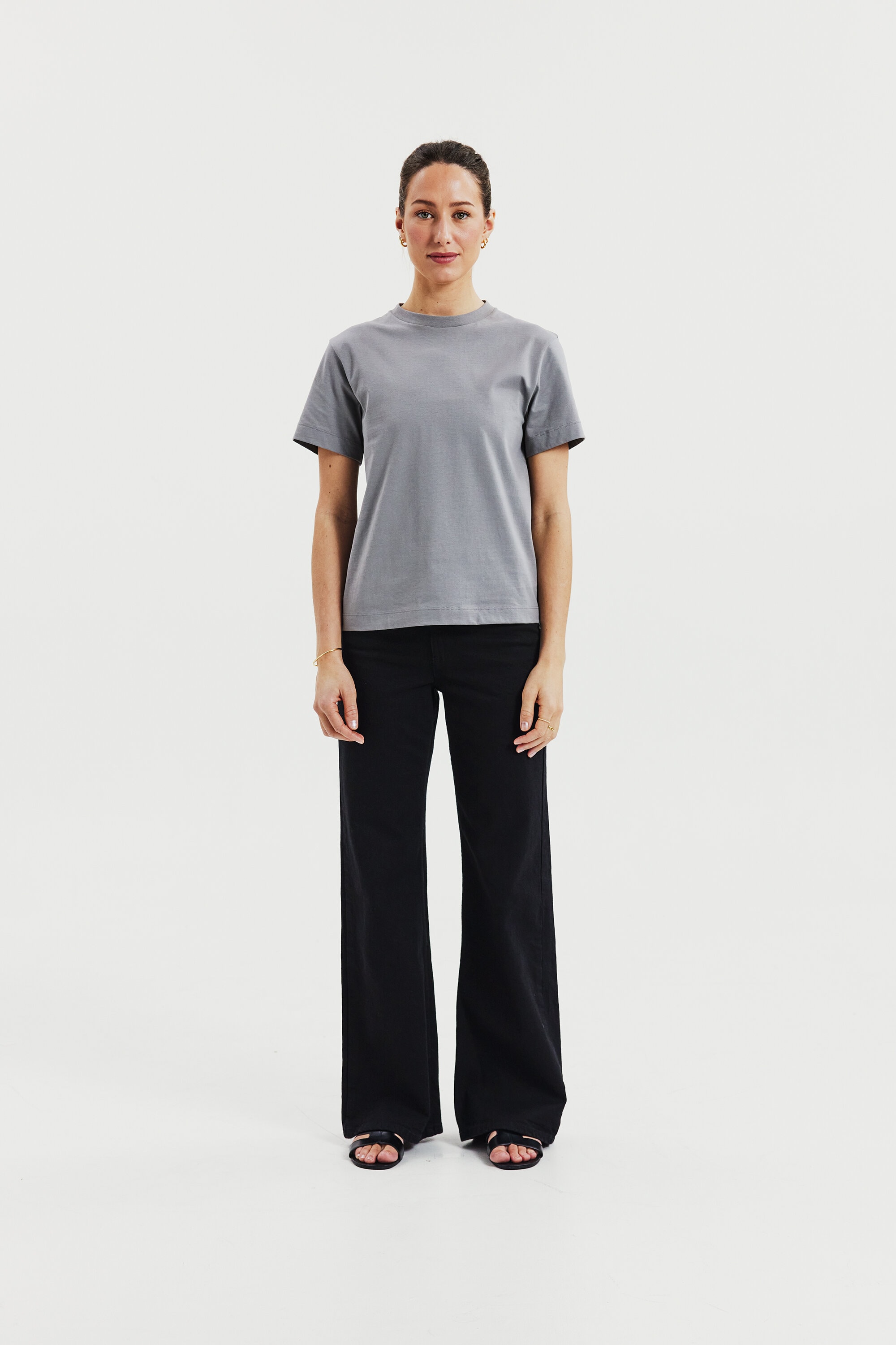 A modern classic with a high neck and boxy design. Made of dense, soft organic cotton which isn't see-through and is perfect for all occasions, whether you want to be sporty, casual or dressed up. Wear it tucked in or out. Concealed seam in the neckline and normal length sleeves.