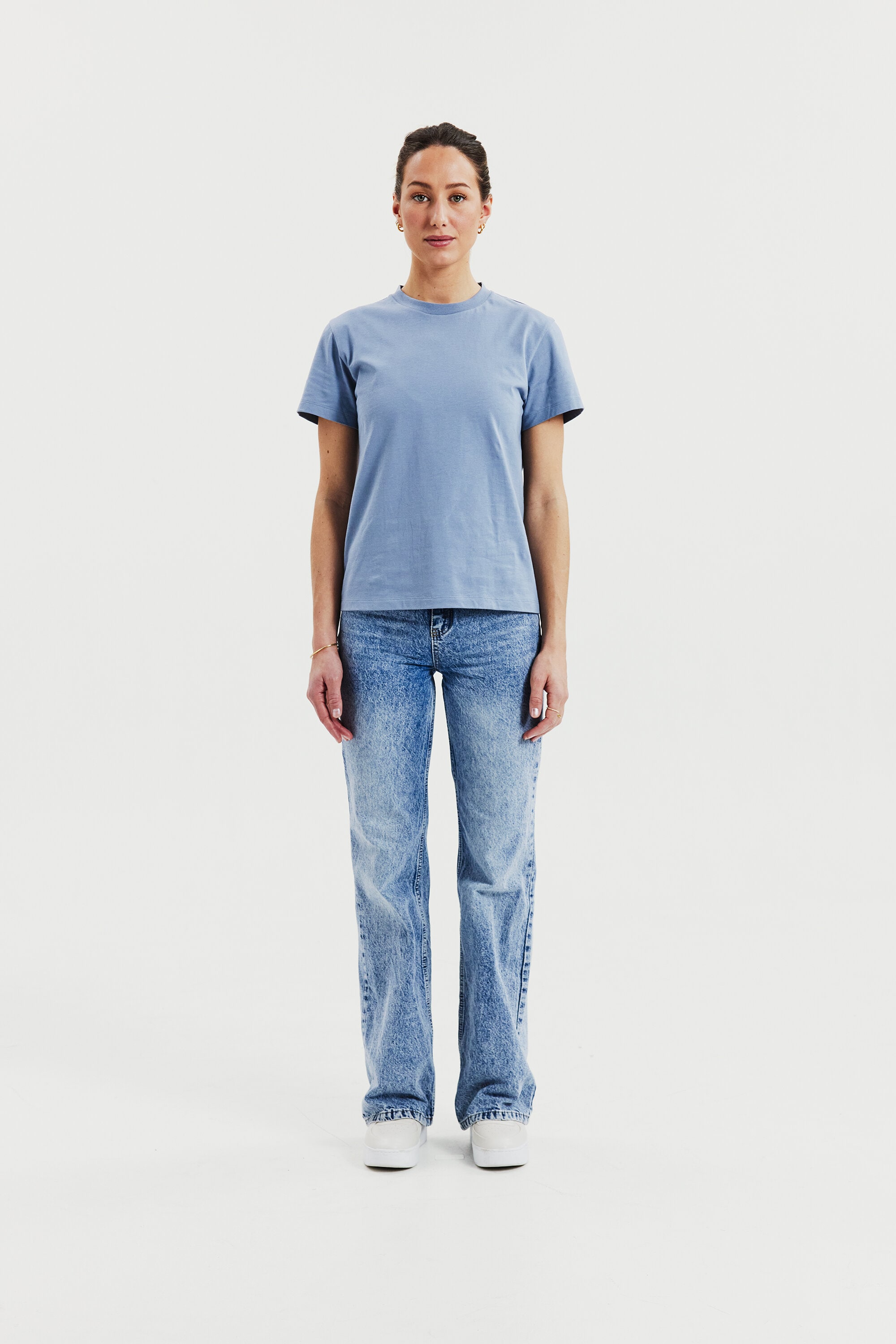 A modern classic with a high neck and boxy design. Made of dense, soft organic cotton which isn't see-through and is perfect for all occasions, whether you want to be sporty, casual or dressed up. Wear it tucked in or out. Concealed seam in the neckline and normal length sleeves.