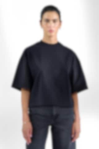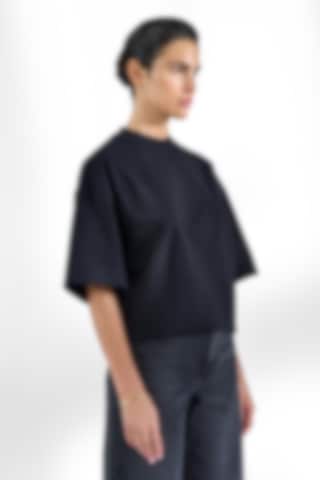 Crafted from sturdy 300 gsm organic cotton fabric, this T-shirt offers a substantial feel and exceptional comfort. It features a robust neckline with top stitch detailing and stylish side slits. With slightly extended sleeves and broader shoulders, it gives a subtle oversized look. This piece truly shines when worn solo, delivering an effortlessly cool aesthetic.