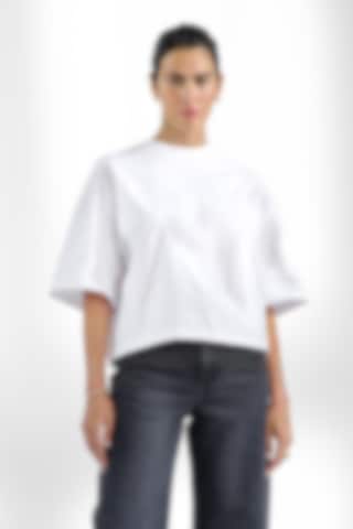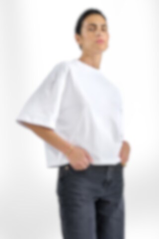 Crafted from sturdy 300 gsm organic cotton fabric, this T-shirt offers a substantial feel and exceptional comfort. It features a robust neckline with top stitch detailing and stylish side slits. With slightly extended sleeves and broader shoulders, it gives a subtle oversized look. This piece truly shines when worn solo, delivering an effortlessly cool aesthetic.