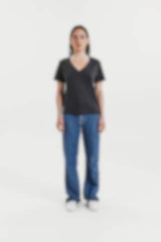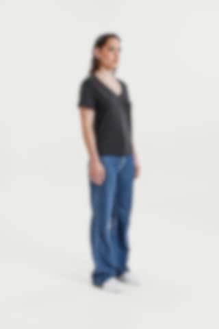 A modern classic, this T-shirt features a boxy cut crafted from dense, soft organic cotton jersey. Designed for a regular fit, it has a generous V-neck and is finished with precise topstitching along the edges—an essential staple for any wardrobe.