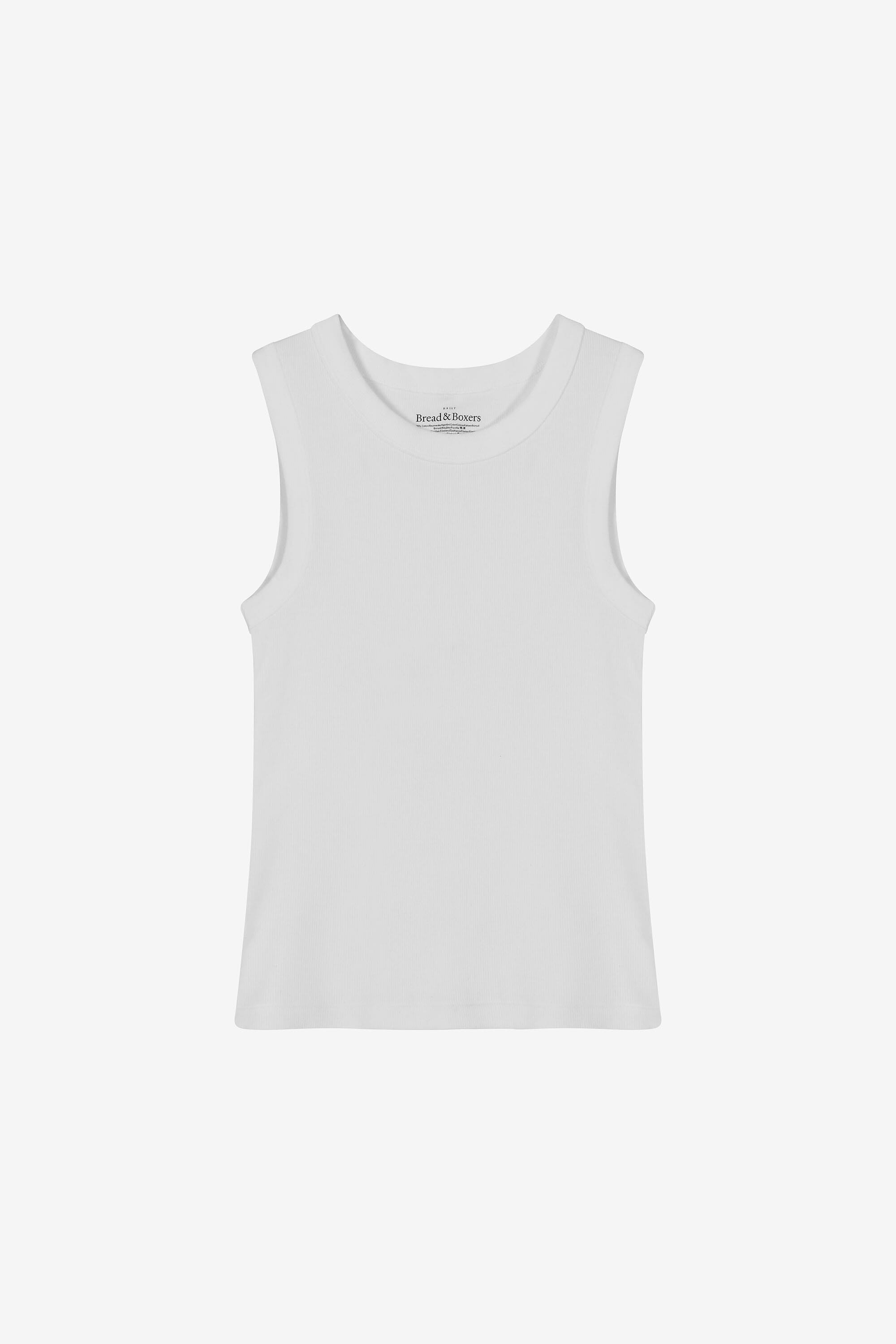 Ribbed tank top with a high neckline and slightly wider shoulder straps than a usual tank top. Made from organic cotton with added stretch so that the figure-hugging fit lasts all day. Perfect for wearing with a skirts, but also as a first layer under a blazer. A real hero in your wardrobe.