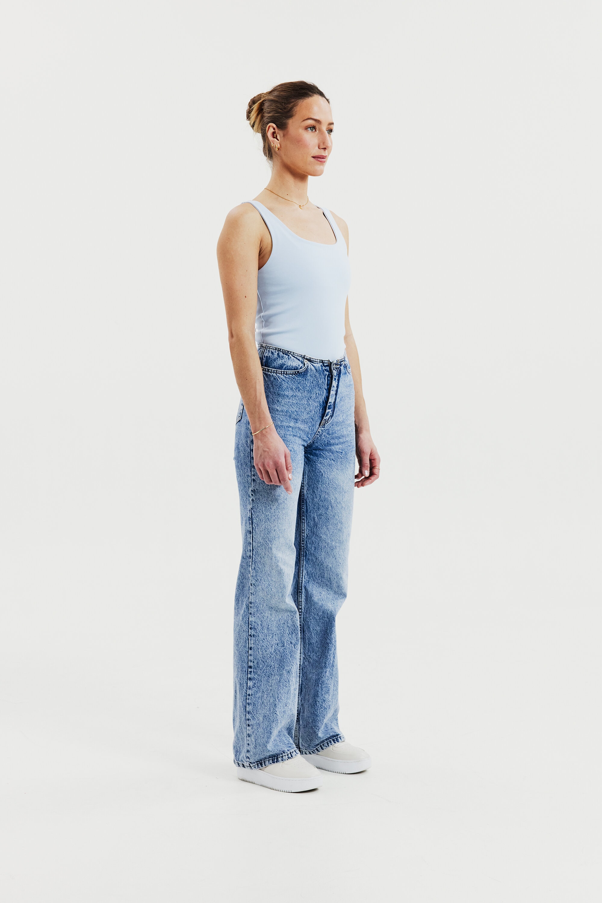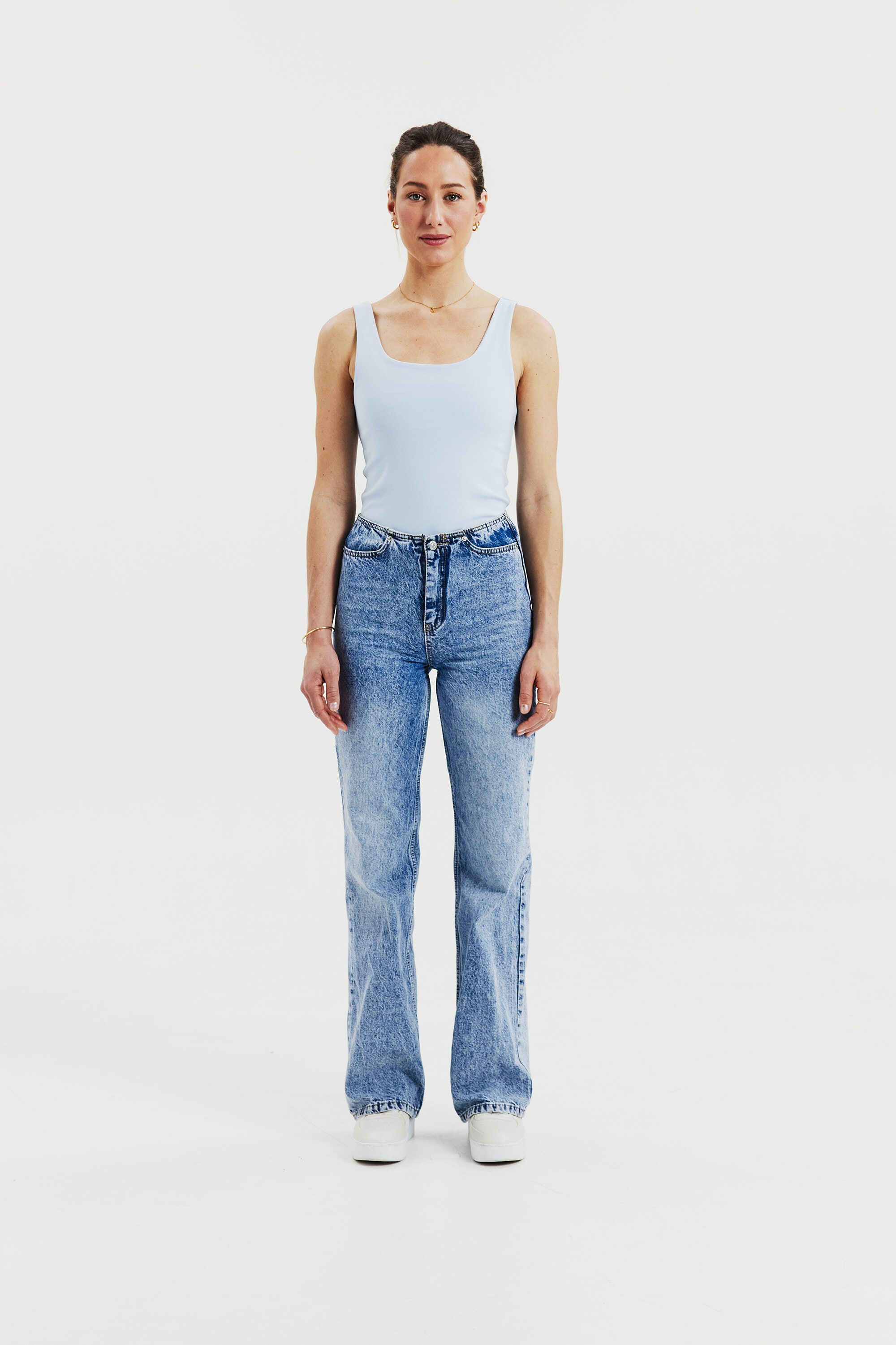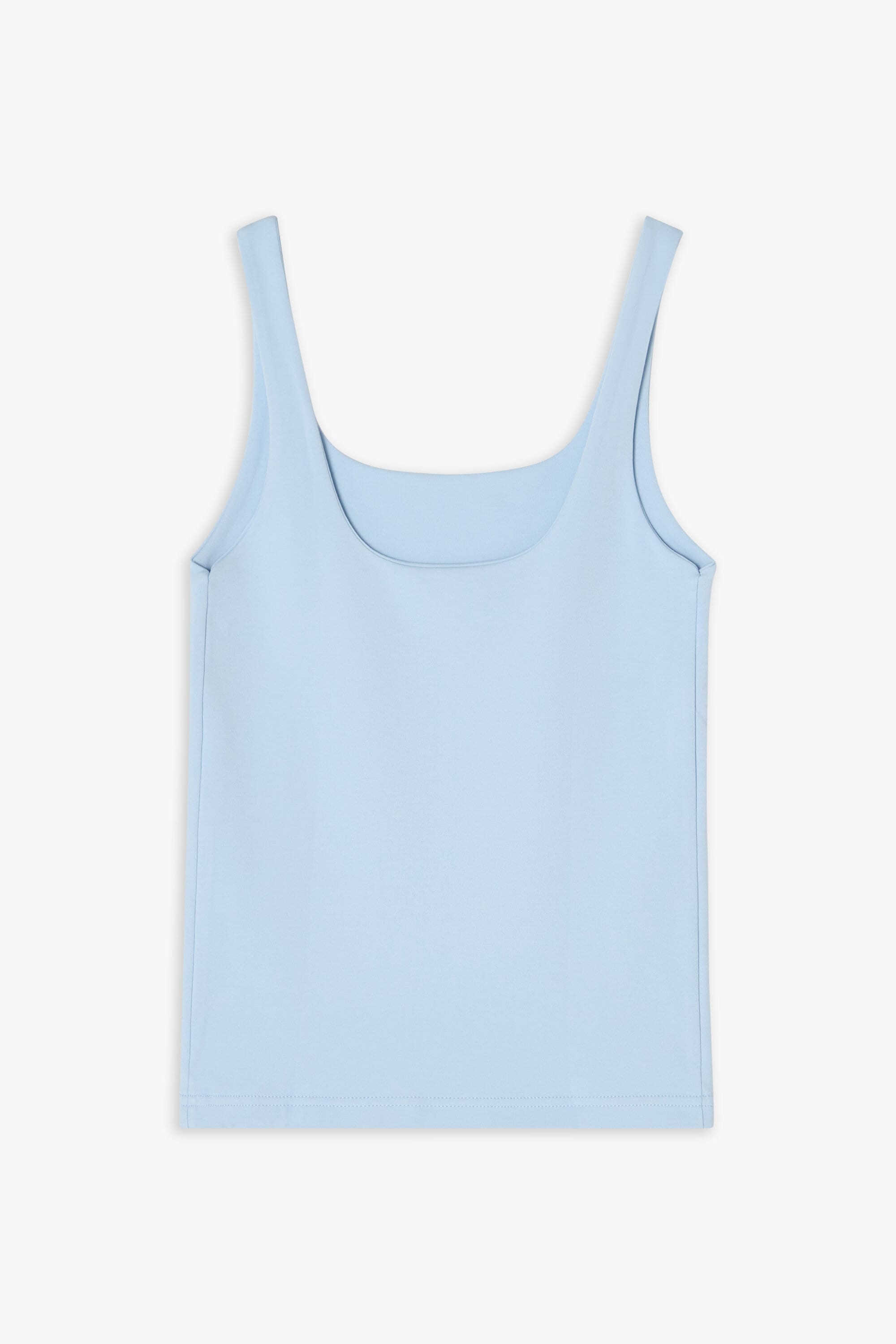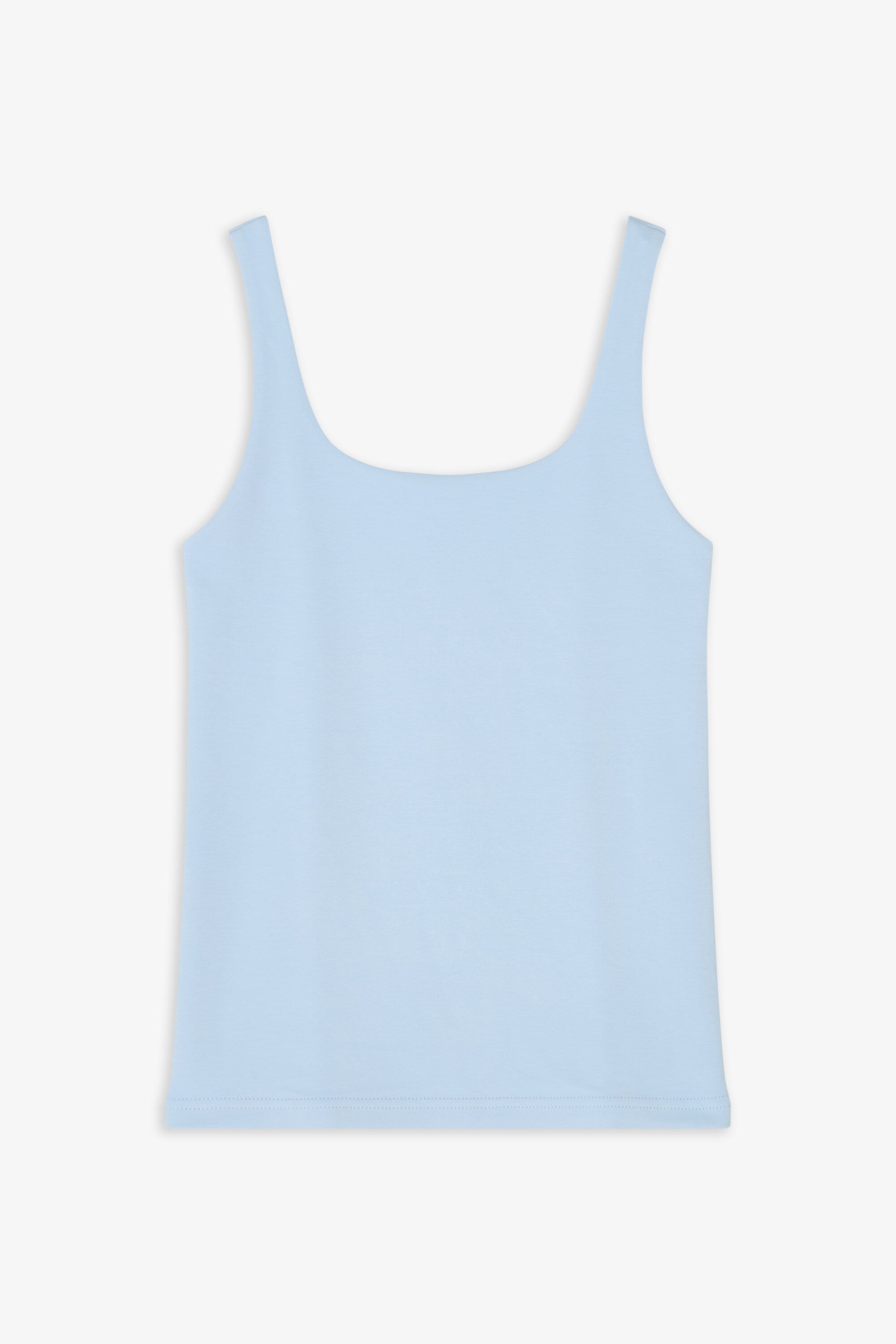 Elegant tank top made from an organic double layered cotton jersey for a luxury feel. Its hidden seams and perfected bands makes it just as suitable for the party as an everyday staple. The unique design is fully covering, has a scooped back and provide a slight shaping feel. We love to style it with almost all items in our wardrobe but especially with a festive skirt or with jeans and a blazer.